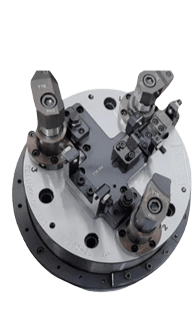 Multiple Adjustable Fingers: The chuck uses multiple "fingers" (clamping elements) that can be individually adjusted to accommodate different workpiece diameters or geometries. These fingers are often mounted on a rotating hub or base, which allows for precise radial movement, ensuring a uniform clamping force around the workpiece.